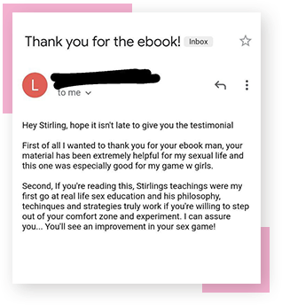 It’s no-nonsense, 0% filler. It outlines the 3 main areas of a successful dating and sex life: