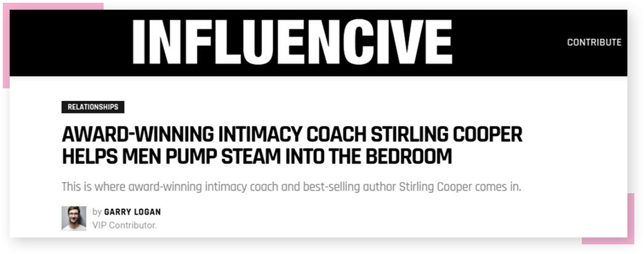 "Award-Winning Intimacy Coach Stirling Cooper Helps Men Pump Steam Into the Bedroom”